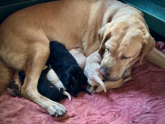 Topáz szerda este nyolc egészséges kiskutyát hozott a világra – de a nap még tartogatott egy igazi csodát! Órákkal később megszületett a kilencedik apróság, egy sárga kislány, aki fele akkora, mint a testvérei, és valóságos csoda, hogy él és egészséges.