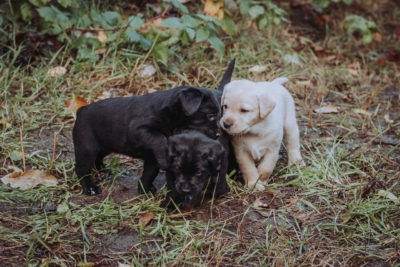 Tökéletes gyermekkora van a jövő vakvezető kutyáinak! Topáz kölykei ezen a héten töltötték be az öthetes kort, és nemcsak hogy gyorsan meghódították az őszi kertet, de már kint alszanak éjszaka is. Amikor meglátogattuk őket, éppen a harmatos levelek között játszottak és közben el-eltűntek egy hatalmas alagútban.