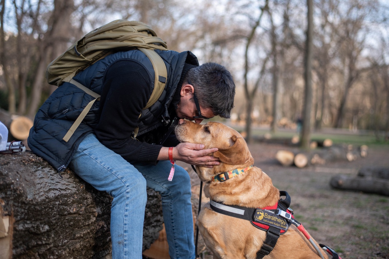 A túl kötött és elszigetelt fejlesztői életforma elhagyása után következett az ingázás Veszprém és az egyetemi munkahelyek között. A naponta több óra vonaton már sok volt Parfénak, aki idén tölti be a hetedik életévét. Attila egyeztetett a kutyáját kiképző Baráthegyi Vakvezető és Segítő Kutya Iskola Alapítvánnyal, és arra jutottak, hogy kevesebb terhelésre, több mozgásra és szabadidőre van szüksége.