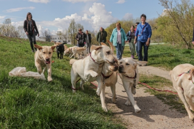 „Együtt sétálni sok minden miatt jó, nekem kiképzőként öröm látni, amikor 15-20 kutyával megyünk együtt. Közben beszélgetünk, és fontos kérdésekben tudok segíteni a kölyöknevelőknek. Azt is látom, hogyan működnek együtt a kutyájukkal, és olyan alapvető kérdésekben adhatok tanácsot, amire nem biztos, hogy máskor sor került volna.”