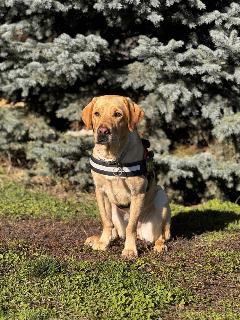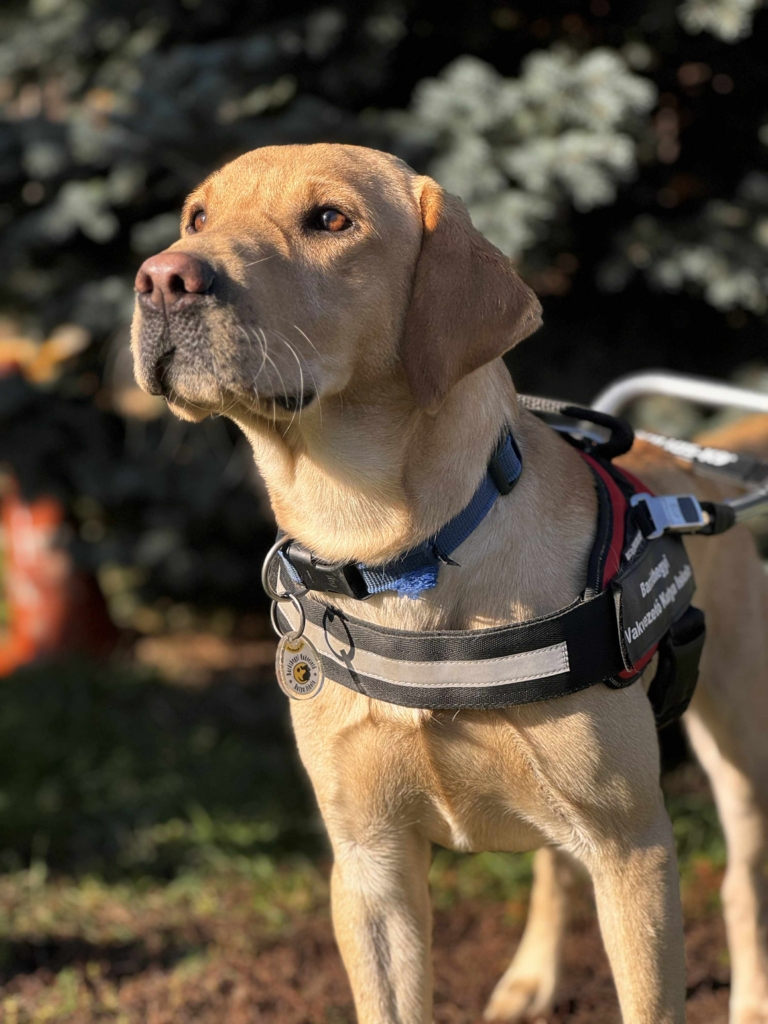 Hargita egy közepes termetű, világos, már-már fehéres árnyalatú sárga labrador kan, aki finom megjelenésével és kiegyensúlyozott kisugárzásával azonnal bizalmat ébreszt az emberekben. Kölyökként igazi játékos, energikus egyéniség volt, aki minden helyzetben megtalálta a vidámságot, ám a képzés során megtanulta, hogyan fordítsa ezt az energiát fókuszált munkává. Ma már egy megfontolt, higgadt kutya, aki nem kapkod, hanem átgondoltan, biztosan reagál a feladatokra. Gyors felfogása és tanulási vágya kiemelkedő: amit egyszer megért, azt stabilan és megbízhatóan alkalmazza a gyakorlatban is. Nyugodt jelenléte biztonságot sugároz, ugyanakkor ott van benne az a belső lendület, amely szükséges ahhoz, hogy a mindennapi kihívásokban magabiztos társa legyen gazdájának. Hargita nem a hangos, tolakodó típus – ő csendesen, figyelmesen van jelen, és pontosan érzi, mikor kell előtérbe lépnie. Ez a fajta kiegyensúlyozottság és önuralom teszi őt igazán alkalmassá arra, hogy egy látássérült ember számára ne csak vezető, hanem biztonságot adó, stabil pont legyen a mindennapokban.