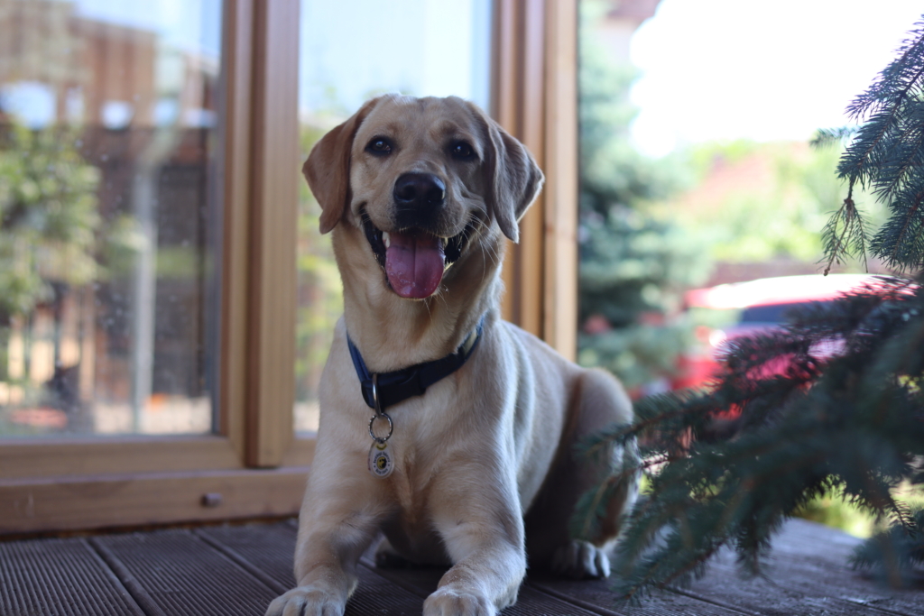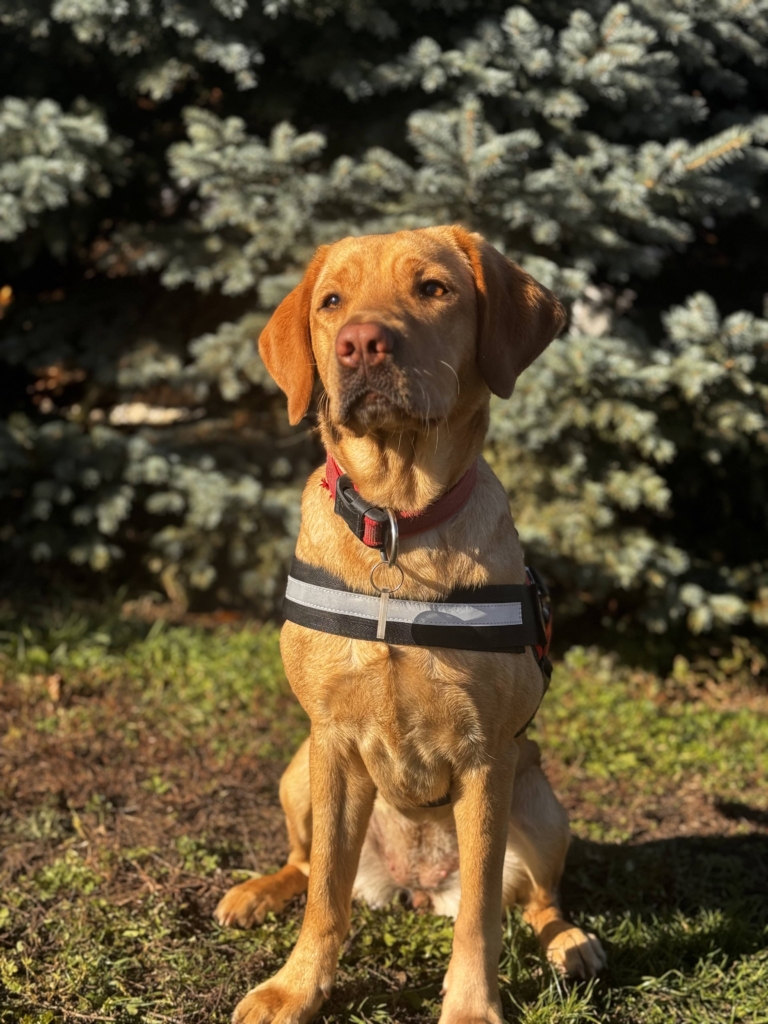 Foton, az F-alom egyik nagyra nőtt kan kutyája, aki idén augusztusban lett egy éves és képzésbe is került! Ez az impozáns sárga labrador egy nagyon kedves, bújós, pusziosztós kutya, aki folyamatosan az ember társaságát keresi. Sétákon mindig a gazdi közelében van, s bár a szimatolás néha más útra téríti, de amint érzékeli hogy túl távolra tévedt, vad rohanással igyekszik utolérni kiképzőjét. Aktív, de nem túlmozgásos kutya, aki szívesen vesz részt bármilyen feladatban, figyelmesen és gyorsan tanul. Más kutyák társaságát kifejezetten keresi és igényli is, bárkivel megtalálja a megfelelő módot a játékra, de aki nem barátságos, arról hamar le is fordul. Munkában precíz, jutalomfalattal könnyen motiválható, lelkes kutya, aki várhatóan közepes, kényelmes tempójú lesz, s mindemellett remek társa lehet majd egy látássérült emberek, hogy varázslatos természetével nemcsak vezesse őt, de tényleg új utakat nyisson majd meg neki!