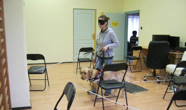 Márciusban ismét szakmai napot tartottunk kiképzőink részvételével. Ezen a napon az elméleté volt a főszerep, hisz ki kellett dolgoznunk egy egységes követelményrendszert a vakvezető kutyák kiképzésével kapcsolatban. A sok elmélet után jöhetett a gyakorlás. Első lépésként visszatalálós feladatban vettünk részt, nem is akárhol, Tapolcán, meglehetősen egyenetlen, hepe-hupás talajon, a szállítószalag mellett. Nem volt könnyű, de mindenki megbirkózott a feladattal. Végül visszaérve a Központba az épület egyik termében felállított akadálypályán kellett végigmennie a kiképzőknek a tanuló kutyáikkal. Egy igazán nehéz, ugyanakkor felejthetetlen és vidám napot tölthettünk el együtt.