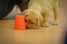 Topáz kölykei lelkesen vetették bele magukat a kihívást jelentő, játékos feladatokba: héthetes korukban megtartottuk az első kölyöktesztjüket. Kölyöknevelő koordinátorunkkal arról beszélgettünk, hogyan keres párokat a nevelők és a kölykök körében.