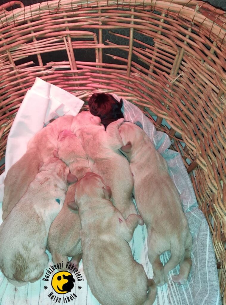 Vasárnap este viszonylag gyorsan megszületett hét kölyök, azután Calgary „rápihent” az utolsóra, aki a legnagyobb lett a testvérek között. A kölykök ideális súllyal, 40-50 dkg között születtek. Anyakutyánk elfáradt, és jól érzi magát a csöppségekkel. Az alom Veresegyházon látta meg a napvilágot önkéntesünknél, Marton Mónikánál.