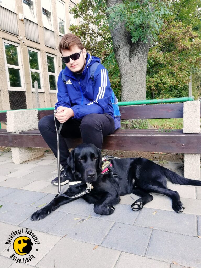 Due to the quarantine, our two pairs of partners had to wait a long time to be able to take their road safety exam. Daniel Pál and Coffee celebrated by eating steak in the evening, and Genius received a high five from his master, Daniel Sziva for guiding him in his training.