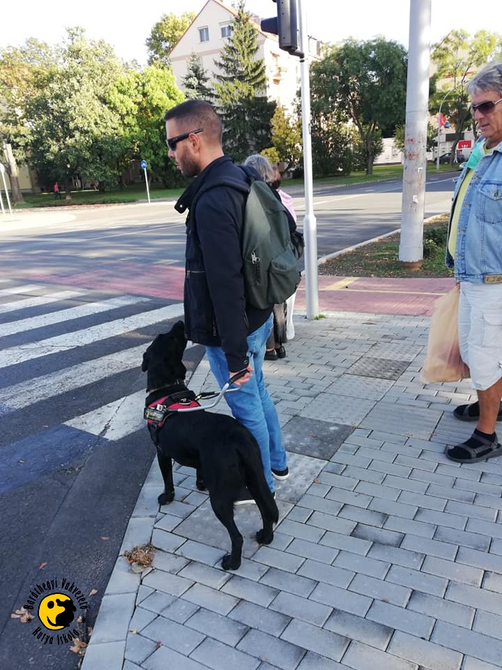 The weather was not good for our pair, as it was raining pretty hard. “They were walking on a pedestrian street where various obstacles make it difficult for dogs to orient themselves. In this case, the dog takes it’s information from the street view, which Coffee did brilliantly, ”said our trainer, Mária Nyíriné Kovács.
